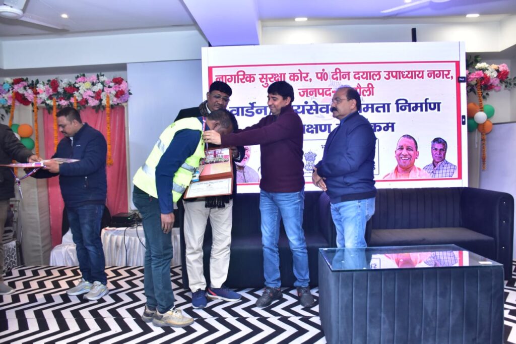 प्रशिक्षण के समापन में सभी वार्डन एवं स्वयं सेवको को जिनके द्वारा प्रशिक्षण प्राप्त किया गया था , सभी प्रशिक्षणर्थियों को उप जिलाधिकारी/ अधिशासी अधिकारी ,राजीव मोहन सक्सैना द्वारा प्रशिक्षण प्रमाण पत्र ,परिचय पत्र एवं प्रशिक्षण किट दिया गया।