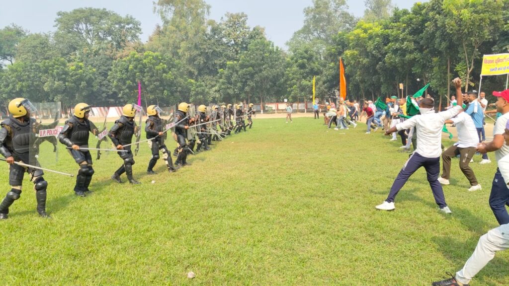 तत्पश्चात वाहिनी परेड ग्राउंड पर महोदय के समक्ष बलवा ड्रिल का डेमोंसट्रेशन किया गया.निरीक्षण के क्रम मे महोदय द्वारा वाहिनी प्रशासनिक भवन स्थित समस्त कार्यालय, आँकिक शाखा, प्रधान लिपिक, CRK कार्यालय, वाहिनी परिवहन शाखा, आरटीसी बैरक, RTC मेंस, बैडमिंटन हॉल सहित आवासीय परिसर का भ्रमण एवं निरीक्षण किया गया।