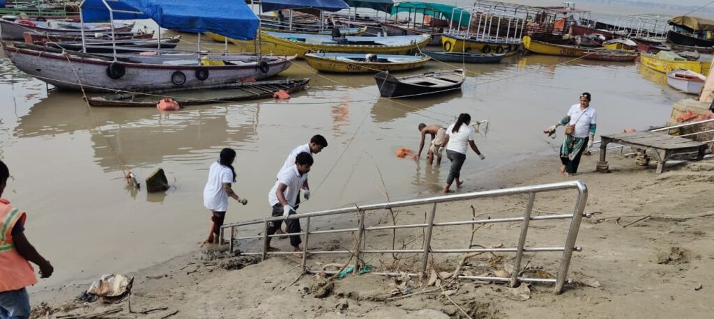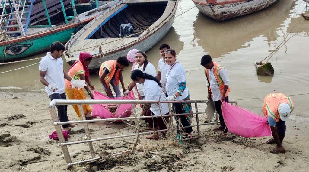 वाराणसी – बाढ़ की विभीषिका के बीच जल शक्ति मंत्रालय राष्ट्रीय स्वच्छ गंगा मिशन अंतर्गत नमामि गंगे गंगा विचार मंच द्वारा निर्मल गंगा की ओर विशेष ध्यानाकर्षण करने के उद्देश्य से स्वच्छता अभियान चलाया जा रहा है।